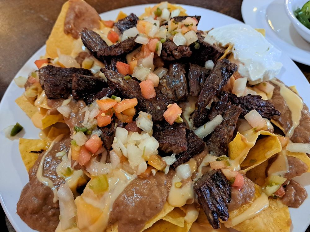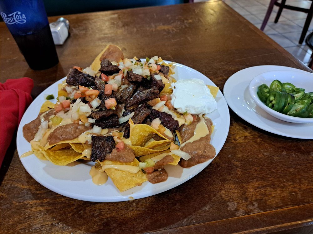 Crispy corn chips covered with refried beans, melted cheese and jalapeno peppers. Served with guacamole sour cream and pico de gallo on the side, and served with choice of style.